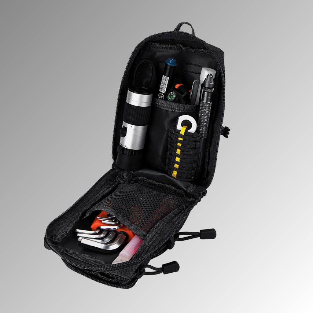 Purpose-built for those who demand quick access and reliable organization. This tactical pouch secures your phone, flashlight, multitool, and essentials in a compact, battle-tested design. Attach to any belt, vest, or backpack and keep your hands free for what matters most.